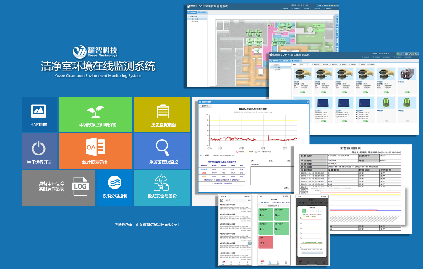 • 潔凈環境在線監測系統主要由測量傳感器、真空泵控制系統、網絡機柜,報警系統和上位機監控軟件五大部分組成,可實現對潔凈室中潔凈度、溫濕度、壓差、風速等參數的實時監測,并完成數據儲存、管理等功能。在生產過程中,周圍環境的情況通常是不斷變化的,而人工監測無法提供連續監測數據,因此無法估計系統是在何時偏離了規定工況,更無法估計產品的質量情況。而潔凈環境在線監測系統避免了人工監測的這種缺陷,它將多臺遠程遙控粒